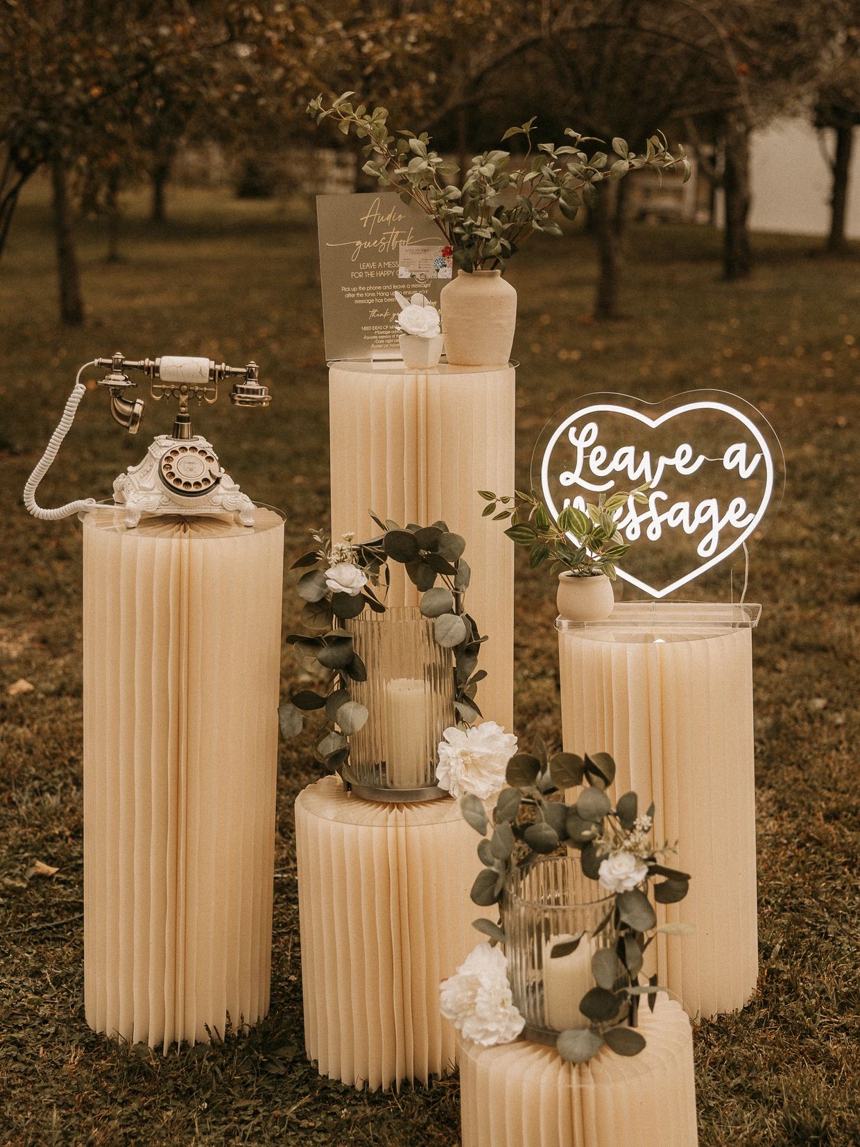 This Unique Audio Guestbook set-up rental is $375 all day, it includes free delivery/pick-up, set-up and breakdown, after your event a google drive folder with all the audio messages will be sent the following day or a max of 1 week from the time of your event! You also have the option to send me your own recording for me to install on the phone! You can choose the set-up that you like the most ☎️✨️